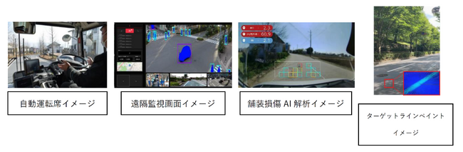 さらに、輸送の安全性を確保するため、NECが提供する映像の送信画質を最適化する技術により、高画質の映像をリアルタイムで遠隔監視室に配信するとともに、車内外の状況を映像分析AIにより分析することで、将来的な車内事故の未然防止や、バス走行路線の損傷点検等の実現に向けた検証を行います。