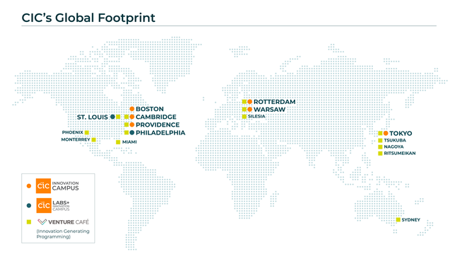 CICは、スタートアップの成長を加速する豊富なリソースやコミュニティと、フレキシブルに働けるオフィススペースを提供する世界トップクラスのイノベーションキャンパスの運営者です。CICイノベーションキャンパスは、世界4ヵ国・8都市において、9万平方メートル以上に及ぶフレキシブルオフィススペースを運営しており、1999年の創業以来、世界中で8,300を超える企業が入居してきました。1999年から2021年にかけて、CIC入居企業がベンチャーキャピタル等から調達した資金は約137億ドル(約1.9兆円)に上ります。この並外れたスタートアップを成長させる力を日本にも呼び込むべく、2020年10月にアジアで初となる「CIC Tokyo」を開設しました。(仮称)新福岡ビルへの開設が実現すれば、アジアでの2拠点目の施設となります。