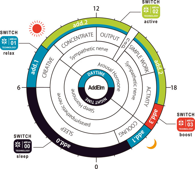リブストイでは、鉱石から抽出した様々な元素を調合したパウダーを繊維などの素材に加工し、人体生理学の治験データを基に、なりたいコンディションに合わせてウェアを選べます。運動時のコンディションを整えるアクティブウェアと、リラックスや休憩を目的としたコンフォートウェアを展開しています。