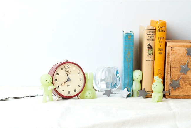 光を吸収し、暗くなると発光する蓄光素材を使用しているため、暗闇ではポワっと光ります。