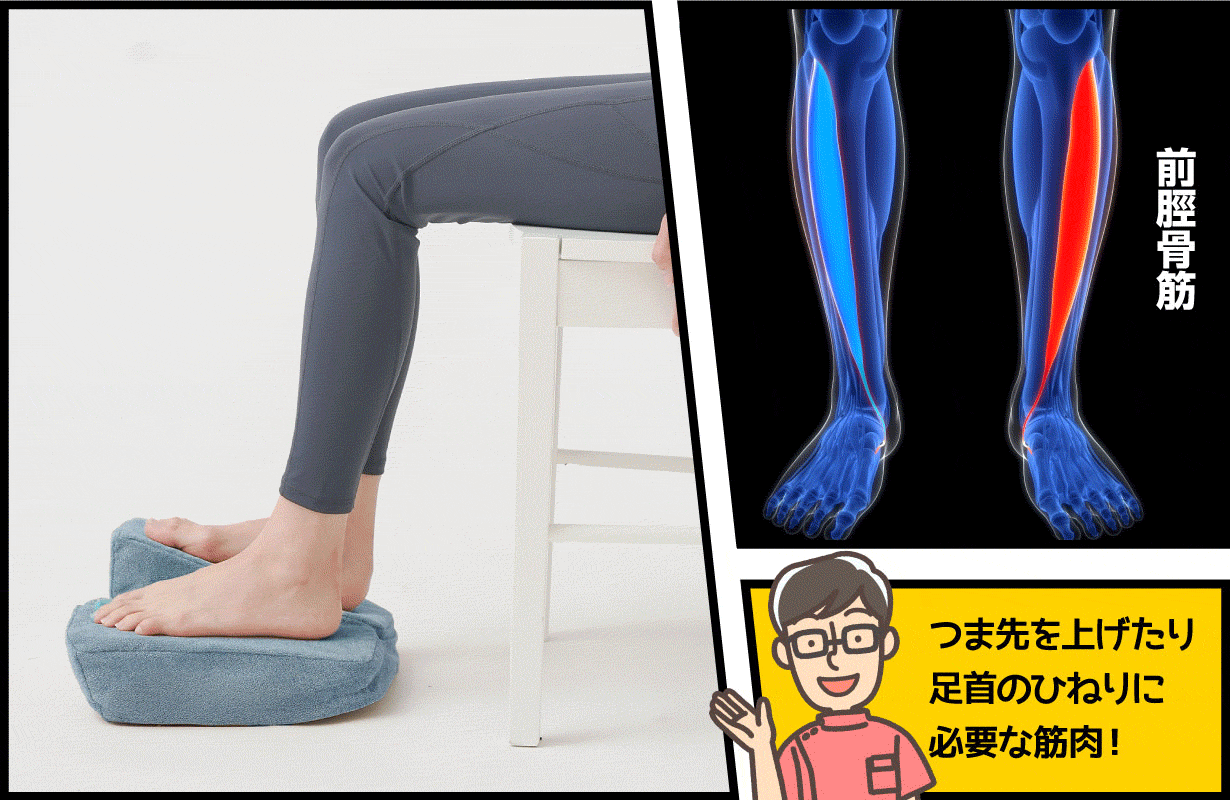 1.つま先上がりで使用:足首を動かすことで、つま先がしっかり上がるようになり、すねが鍛えられます。