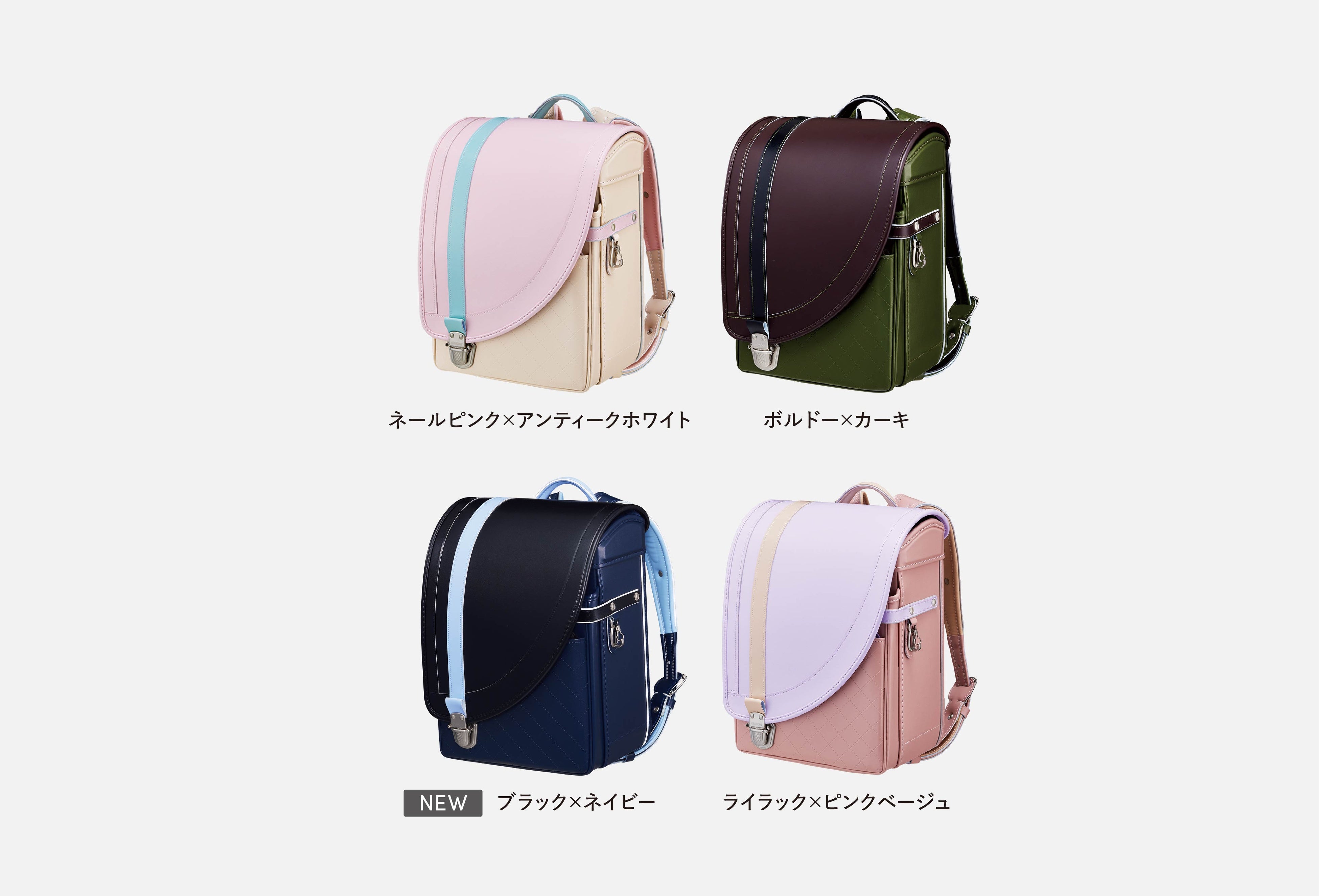 色展開:ブラック×ネイビー(新色)/ネールピンク×アンティークホワイト/ライラック×ピンクベージュ/ボルドー×カーキ