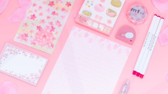 桜に関連するアイテムも選りすぐりつつ、4つ異なるデザインが施されたモダンな春デザインのメモパッドや、フィルム仕立てで半透明のマスキングテープ、美濃和紙で作られたレターセットなど、1箱で春のバラエティーを感じられる仕上がりとなりました。実用的に活用いただけるような桜色のカッターや、海外で大人気のユニボールワンPも入り、デザインだけでなく多面的な楽しみ方ができるボックスです。
