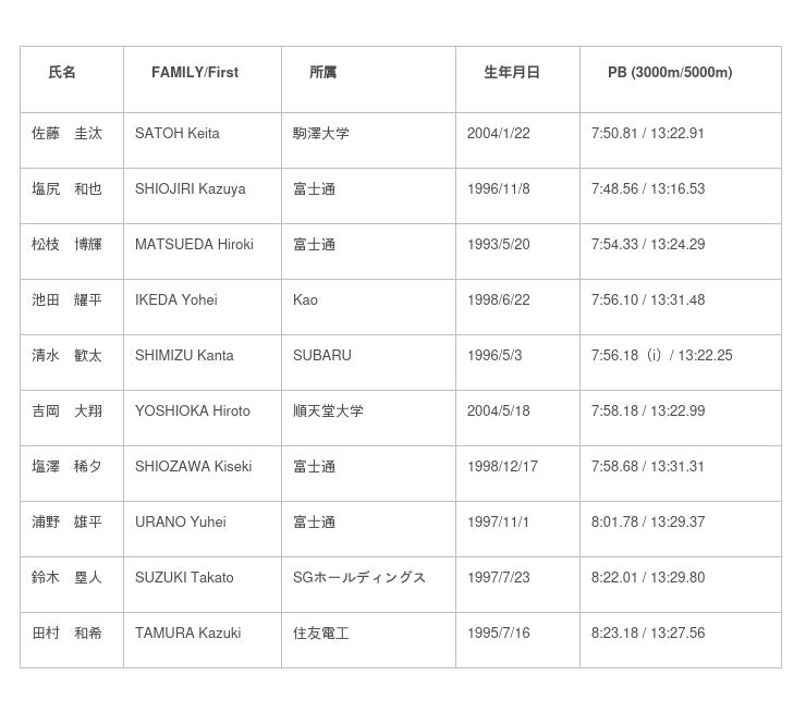2023年5月21日(日)に日産スタジアムにて開催する「セイコーゴールデングランプリ陸上2023横浜」男子・女子3000mに出場を予定している選手を下記の通りお知らせいたします。(2023年4月28日現在)