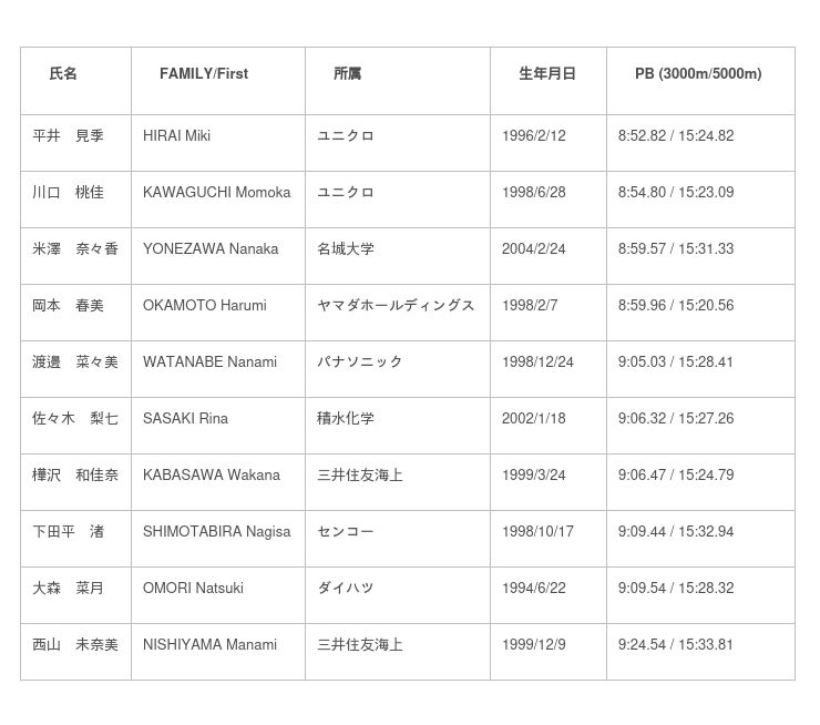【セイコーGGP】男子・女子3000m出場選手のお知らせ