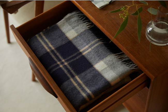 幅70cm×長さ190cmの大判ストールは、ジョンストンズ オブ エルガンの代表的なアイテム。 グルッと首に一巻きするだけで、コーディネートの主役になってくれる存在感が魅力です。 また、肩にかけたり、自宅ではブランケットとしても活用できるため、ライフスタイルにあわせて幅広く活躍してくれます。
