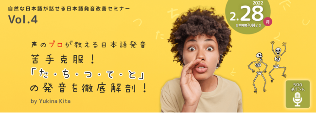 【日本語学習者向けオンラインセミナー】声のプロが教える日本語:苦手克服!「た・ち・つ・て・と」の発音を徹底解剖!を開催