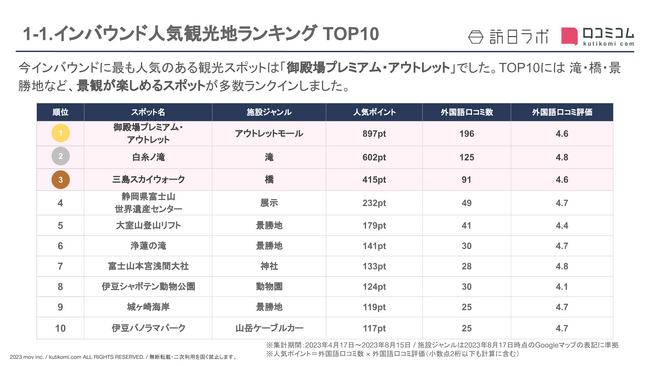 【独自調査】インバウンド人気観光地ランキング静岡編:コロナ後 最新の訪日客の支持を集めたスポットTOP10を発表 #インバウンドMEO