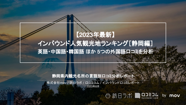 国内最大級のインバウンド総合メディア「訪日ラボ」及び 口コミサイトを”もっと”売上に変える店舗支援SaaS「口コミコム」を運営する株式会社mov(代表取締役:渡邊 誠、本社:東京都渋谷区、以下mov)は、観光名所に寄せられた最新の口コミデータから、独自の『インバウンド人気観光地ランキング』を発表しました。