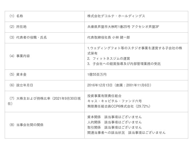 今後当社は、投資事業有限責任組合キャス・キャピタル・ファンド六号が保有するデコルテ社の株式1,685,400株のうち、1,532,400株(2022年9月28日時点の発行済株式総数に対する比率27.03%)を、18.6億円にて市場外の相対取引により取得し、デコルテ社は当社の持分法適用会社となる予定です。