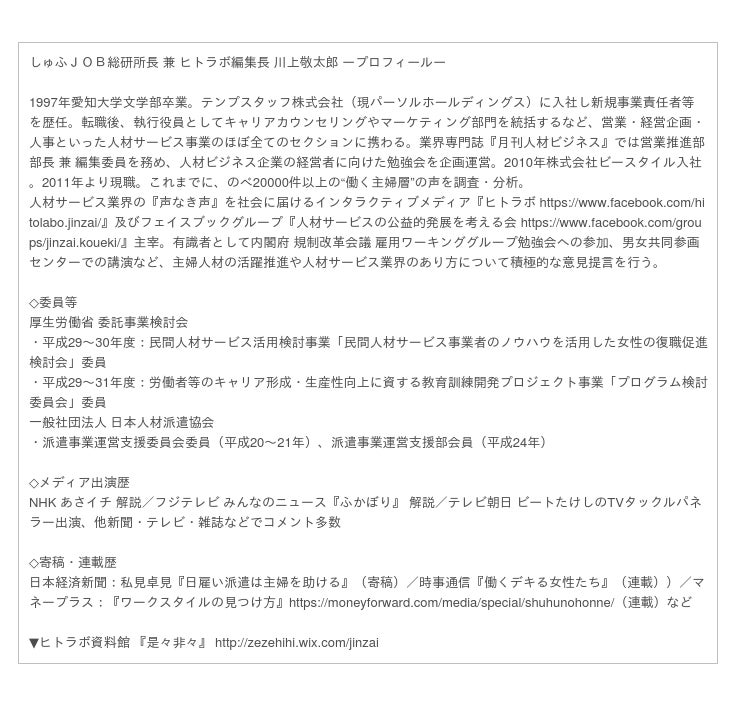 ※しゅふJOB総研は、東京大学SSJDAに過去の調査データを寄託しています⇒http://bit.ly/2n8jHIJ