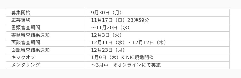 また、K-NIC が開催する展示イベントにもお声がけさせていただくなど、参加者の広報につながる取り組みを提供します。