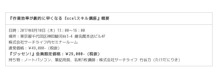 サーチライフ運営・ジッセン! オープン『作業効率が劇的に早くなるExcelスキル講座』開催決定