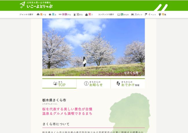 今回の記事のほか、いこーよとりっぷ内では、さくら市のまちページ(https://trip.iko-yo.net/cities/309012)をはじめ、おすすめスポット&イベント情報など、さくら市の魅力を伝える記事を多数掲載しています。週末のおでかけや、旅行に向けた情報収集にぴったりです。