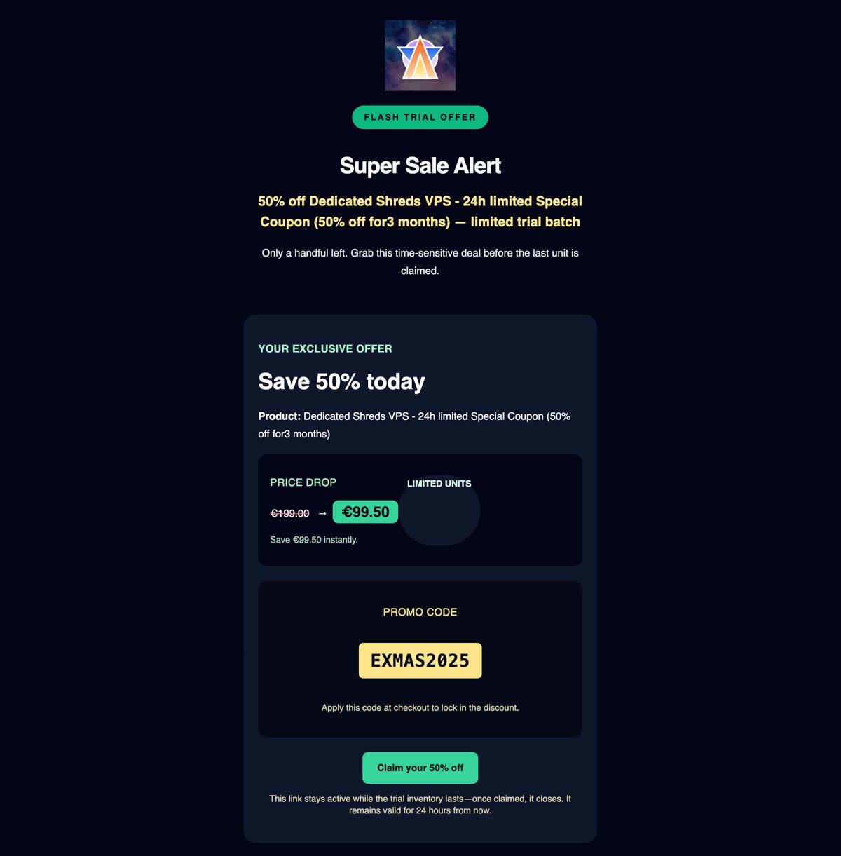 本セールでは、Solana における最速レイヤーである UDP Shreds を直接利用できる Dedicated Direct Shreds を対象として、開発期間応援の位置づけで、3か月間 50% 割引(199ユーロ/月 -> 99.5ユーロ/月)となる特別クーポンを提供しています。本案内は、すでに配信されているメール内容の補足および再掲となります。