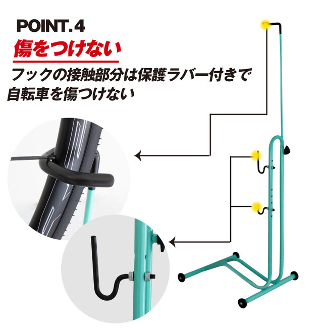 ・各フックには保護ラバーがあるので大切な自転車を傷つけません。