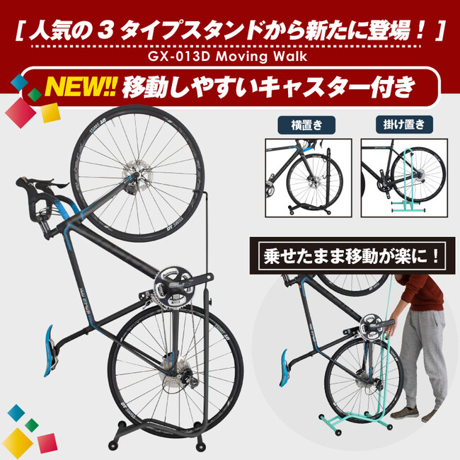 人気の3タイプ対応自転車スタンドGX-013Dにキャスターが付いて移動が楽になりました!