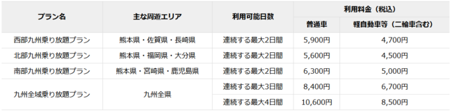 ※各プランごとに同一ETCカードにつき年4回までお申込み可能です。九州全域乗り放題プランについては、3日間プラン、4日間プランそれぞれで年4回までお申込みいただけます。