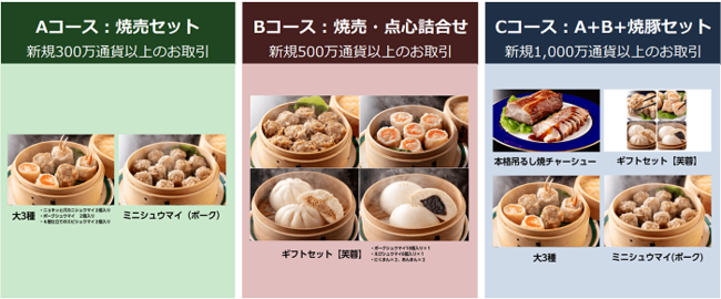 キャンペーン期間中の『パートナーズFX』「人民元/円・米ドル/人民元」および『パートナーズFXnano』「人民元/円」における新規約定数量に応じて、以下の通り日本橋「小洞天」のグルメギフトをプレゼントいたします。