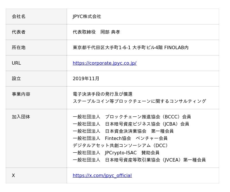 <JPYC株式会社 会社概要>