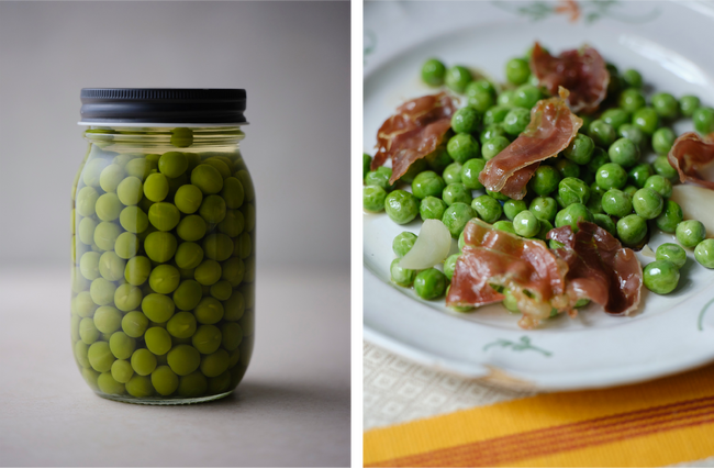 グリーンピースの瓶詰め/グリーンピースの生ハム炒め