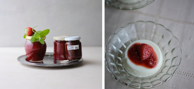 いちごとミントのシナモン風味ジャム、いちごとラズベリーのジャム、いちごとチョコレートのジャム/