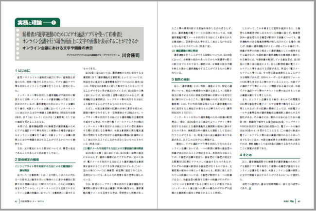 今月は、『候補者が選挙運動のためにビデオ通話アプリを使って有権者とオンライン会議を行う場合画面上に文字や画像を表示することができるか』『就業構造基本調査の際に市の一般職の職員が市の調査区を担当する統計調査員(特別職)を兼ねることができるか』の2つを取り上げます。