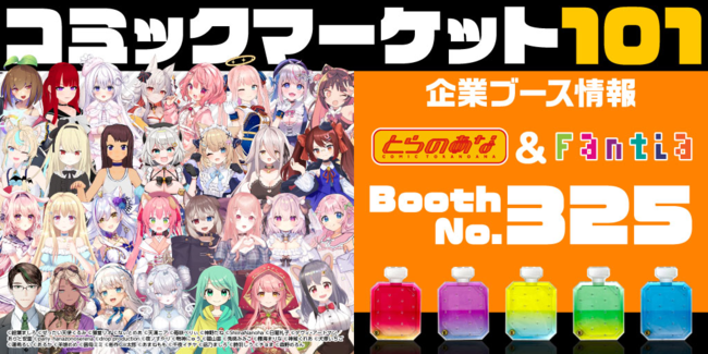 漫画・アニメ・同人誌やキャラクターグッズなどの流通・販売を手掛ける株式会社虎の穴(以下、とらのあな)は、2022年12月30日・31日に開催の「コミックマーケット101」にて、企業ブース(ブース番号325)を出展することをお知らせいたします。