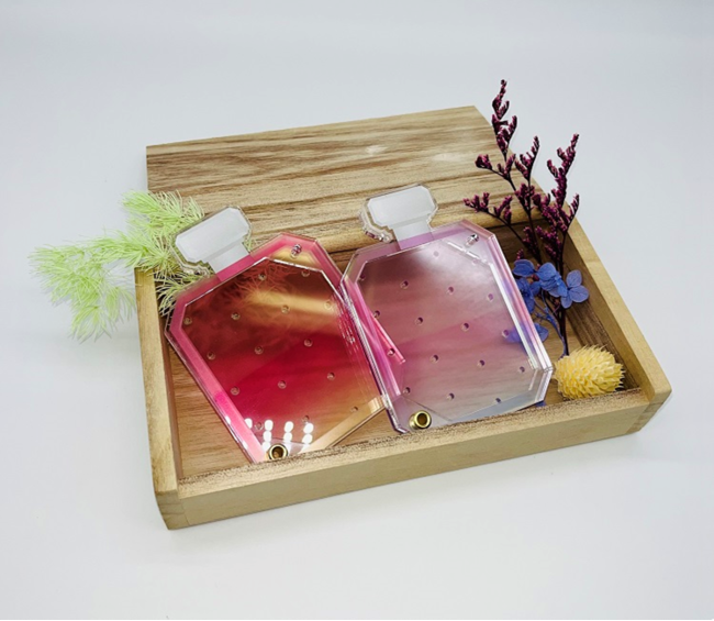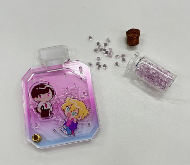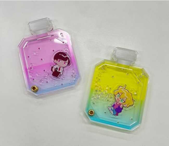 香り玉と推しのパーツを入れ、カバンなどに飾れるアクリルキーホルダーです。