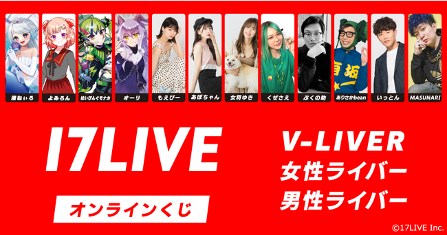 本取り組みは、日頃より「17LIVE」内で活躍している音楽ライバー、モデルライバー、クリエイターライバー、V-LIVERなどのさまざまなジャンルのライバーの魅力を、より多くの方に知っていただき“新たな活躍の場所”をつくるキッカケの一つとしていただきたいという思いから「マルイノアニメPLAYSTORE」と共同で企画の実施が決定しました。販売するグッズは、ライバー自身がキャラクターとなり、リスナーとともにライブ配信を活用してオリジナルグッズを製作、製作したグッズを「マルイノアニメPLAYSTORE」内にて「オンラインくじ」形式で販売します。