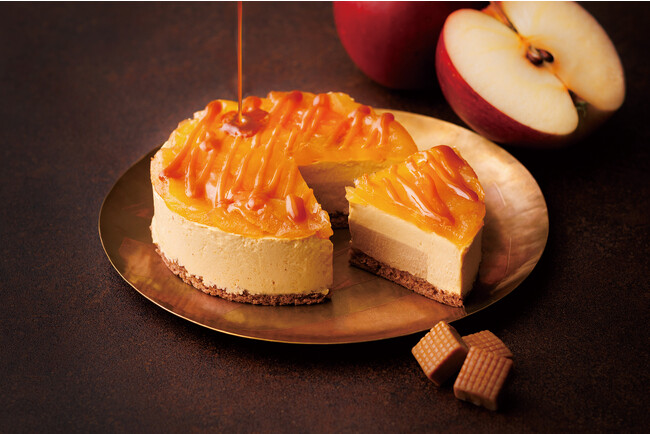 今季、りんごを使ったシーズナルなスイーツとして「キャラメルアップルケーキ」が登場いたします。なめらかな2層のムース、シナモンを纏ったりんごのコンポートに、ほろ苦いキャラメルソースがアシストして、食べた人を幸福感で満たしてくれるケーキです。