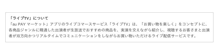 さらに、KDDIおよびauコマース&ライフが運営する総合ショッピングモール「au PAY マーケット」内に、本イベントのオフィシャルショップがオープンします。オンラインワークショップが楽しめるワークショップキットの販売や、ライブコマースサービス「ライブTV」で配信される注目コンテンツ「【通販最前線】アウトドア VS 実演販売士」では、視聴するお客さまと出演者が双方向かつリアルタイムでコミュニケーションをしながらお買い物ができるライブ配信サービスも!