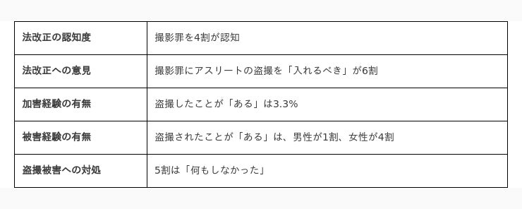 〜アスリート盗撮を撮影罪に「入れるべき」も6割という結果に〜