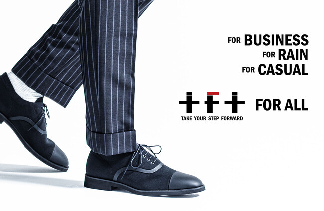 「+F+」は、日本のビジネスシーンを足元から変えていくことを目的に、履く人に新しい体験をもたらす革新的な“ニット素材”のビジネスシューズを展開しています。水に強く、ムレにくく、歩きやすい。ビジネスシーンにおける快適さを徹底的に研究した、革新的なニット素材を使用したシューズシリーズは、過去実施したクラウドファンディングで累計調達金4800万円以上を記録し、2021年度グッドデザイン賞にも選ばれています。