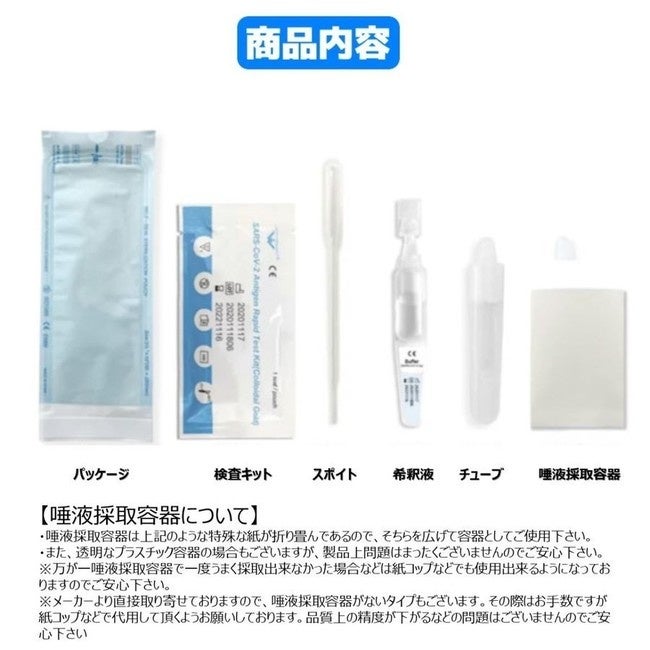 (1回分/検査キット×1、唾液採取容器×1、サンプル処理液×1、チューブ×1)