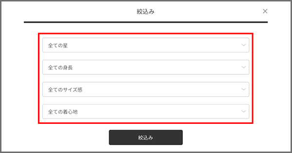 「星の数」「サイズ感」「着心地」などの評価項目や「身長」「普段の足のサイズ」といったレビュアーのパーソナルデータを軸としたレビューの絞り込み機能を実装し、各ユーザーの購入条件と関連性が高い投稿を表示することが可能となりました。