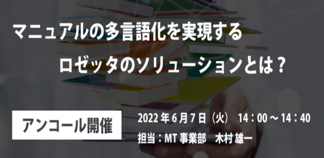 AI自動翻訳のロゼッタ ウェビナー『マニュアルの多言語化を実現するロゼッタのソリューションとは?(アンコール開催)』6月7日(火) 開催