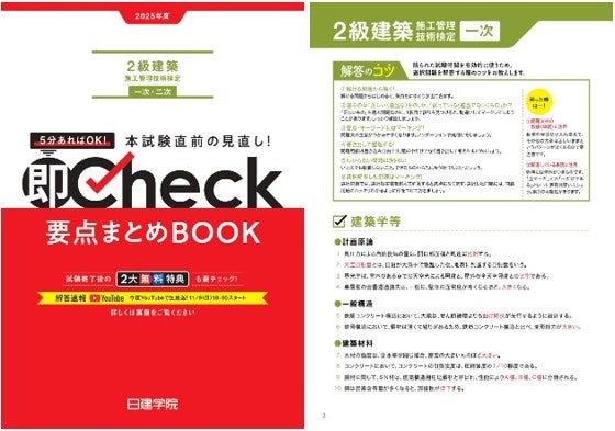 資格取得支援スクールの日建学院を運営する株式会社建築資料研究社(所在地:東京都豊島区、代表取締役社長:馬場栄一)は、2025年11月9日(日)に実施される2025年度(令和7年度)2級建築施工管理技士 後期一次検定の直前対策として、試験当日の朝6:30より「2級建築施工管理技士 後期一次検定 早超直前ライブ」をYouTube LIVE配信いたします。