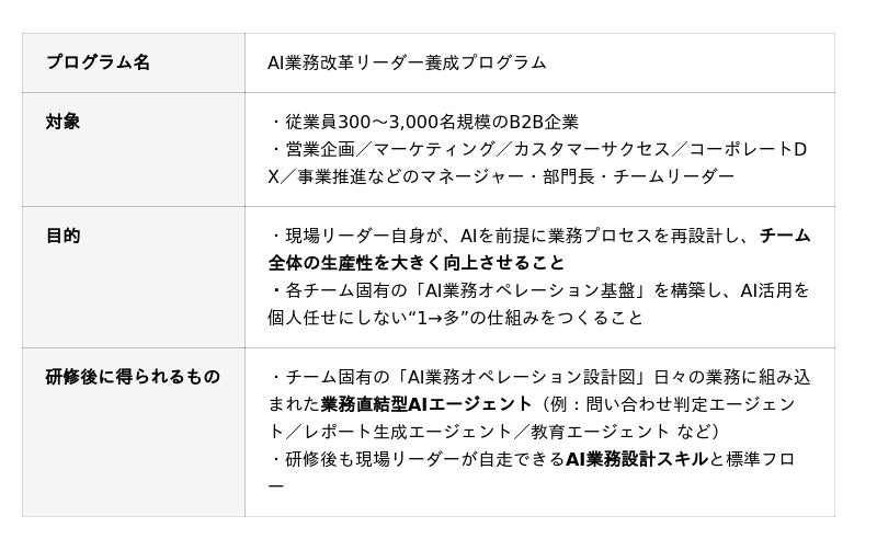 現場リーダーがAIで業務プロセスを再構築する「AI業務変革リーダー養成プログラム」を提供開始