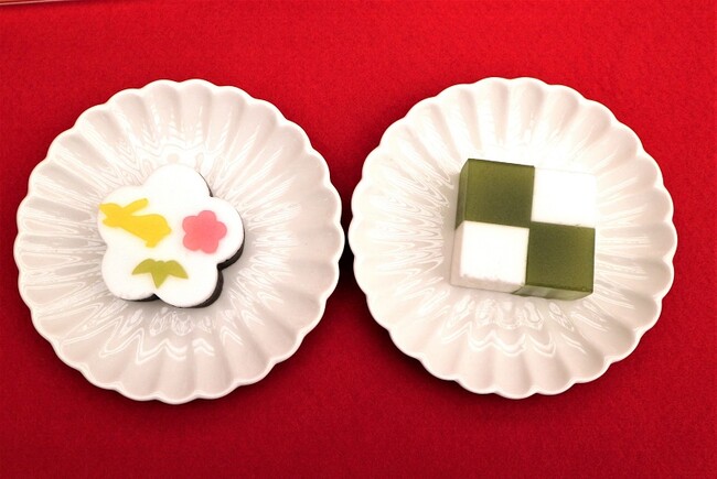 『白梅ようかん』と『市松ようかん』は、高級おせち用のようかんも作っている和菓子メーカーのもの。大量発注することで、100円が実現しています。手の込んだようかんは、一つ一つ職人さんの手作りです。