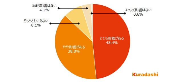 回答者全体の87.2%が、物価高騰が家計に影響していると回答。