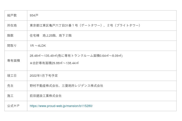 プラウドタワー亀戸クロス 概要 【分譲中】