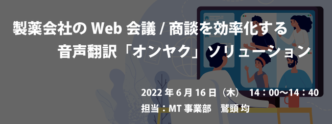 「英語は話せるが、ヒアリングが追いつかない」「英語の理解度に個人差があり、認識のズレが生じる」「海外研修動画を日本語で視聴できたらなあ」 「とにかく議事録が大変!」「リモートワークのため以前のように英語堪能者に頼れなくなった」など、 このような医薬業界の現場の課題を解決するため、本ウェビナーではリアルタイムに音声をテキスト化/翻訳してくれる音声翻訳「オンヤク」の実演と活用事例をお届けします。