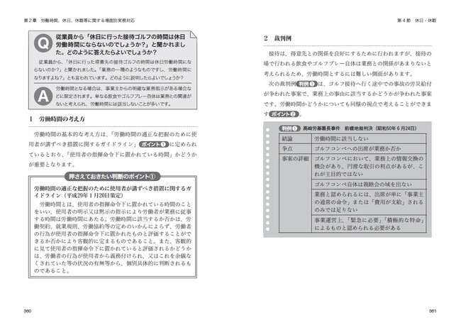 ・変形労働時間制やフレックスタイム制などの法制度も併せて解説。社内で多様な働き方を展開する中で制度を基本的な法解釈に沿って解説しているため、困った時に判断できるスキルが身につく。