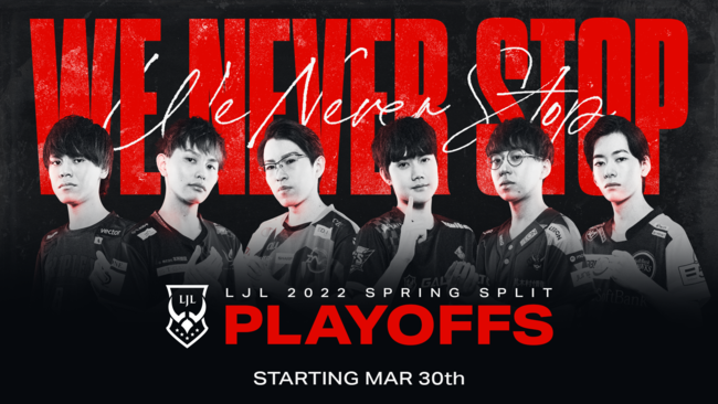 『LJL 2022 Spring Split』プレイオフでの対戦形式は「Bo5」(Best of 5[3試合を先取したチームの勝利])となり、3つのトーナメントラウンドを通して4月10日(日)にFINALSが開催されます。