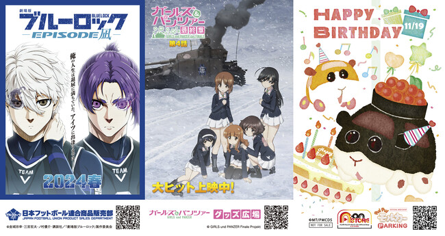 「バンダイナムコCross Store東京 A-on STORE出張版」にて商品2,000円(税込)以上ご購入のお客様に特製ステッカーをお渡しいたします(一会計につき一枚)。特製ステッカーの絵柄には、2024年春公開予定の映画『劇場版ブルーロック -EPISODE 凪-』ティザーイラスト、現在大ヒット上映中の『ガールズ&パンツァー 最終章』第4話キービジュアル第2弾、11月19日が誕生日の「寿司モルカー(いくら)」をメインにしたオリジナルイラストが使用されています。