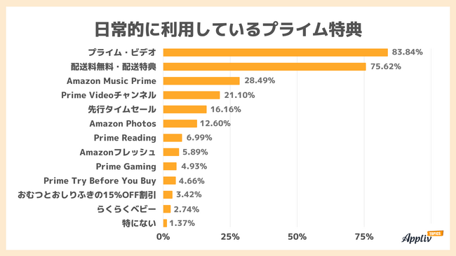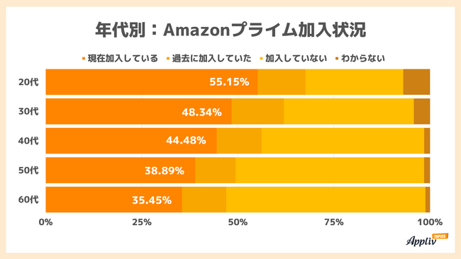 20代は過半数がAmazonプライムに加入 最も活用する特典は「プライム・ビデオ」 配送料無料よりも利用率高(Appliv TOPICS調べ)