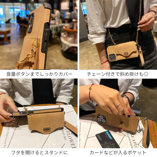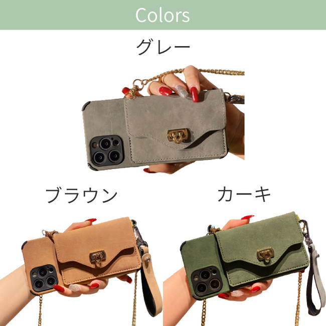 iphone ケース カバー スマホ ショルダー チェーン付き 全3色 iphone11 iphone11pro iphone11promax iphone12 iphone12pro iphone12promax iphone12mini iphone13 iphone13pro iphone13promax バッグ型 斜めがけ フェイクレザー 合皮 お札 カード【gi-IC-001】