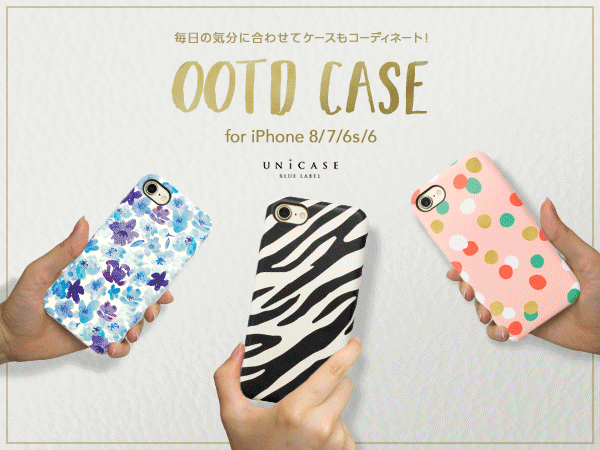 「Outfit Of The Day」の頭文字を取った“OOTD CASE”シリーズは、毎日の気分に合わせてiPhoneケースもおしゃれにコーディネートして欲しいという思いから、iPhone8/7/6s/6は20パターン、iPhone8 Plus /7 Plus/6s Plus /6 Plusは7パターン、様々なタイプのかわいいデザインや人気柄をご用意しました。