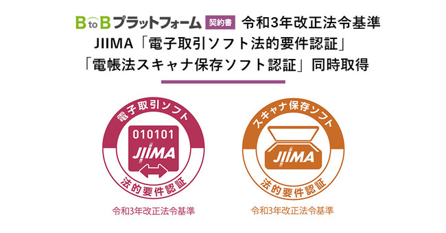 「BtoBプラットフォーム 契約書」がJIIMAの「電子取引ソフト法的要件認証」「電帳法スキャナ保存ソフト認証」を同時取得